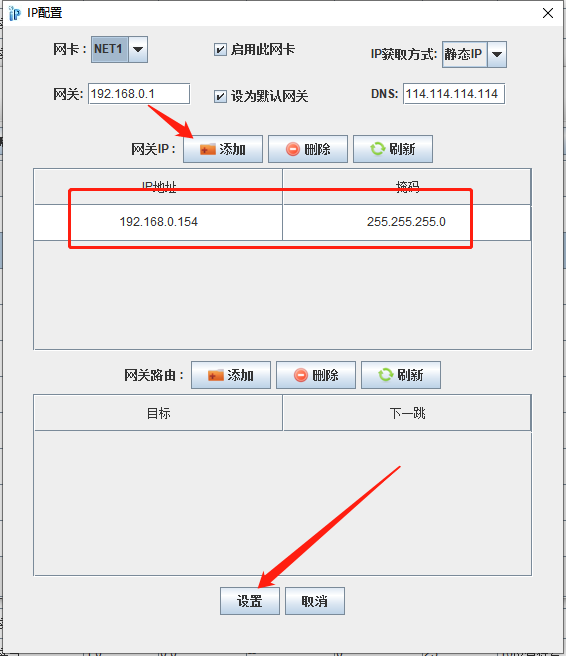 選擇要修改或添加IP的網(wǎng)卡,如NET1,修改原IP或添加新的IP,輸入完成后,最后點(diǎn)擊設(shè)置按鈕生效。