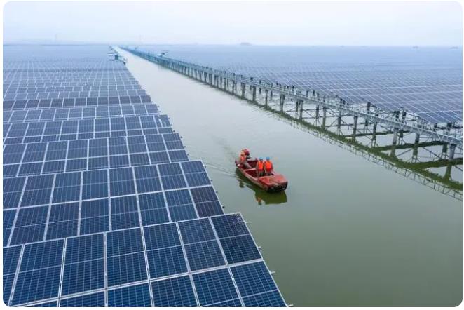該項(xiàng)目位于溫州浙南產(chǎn)業(yè)集聚區(qū)甌飛圍區(qū)內(nèi)的灘涂上,占水域面積約4.7平方公里。項(xiàng)目將漁業(yè)養(yǎng)殖和光伏發(fā)電相結(jié)合,“上可發(fā)電、下可養(yǎng)魚(yú)”,并網(wǎng)后年平均發(fā)電量達(dá)到6.5億千瓦時(shí)